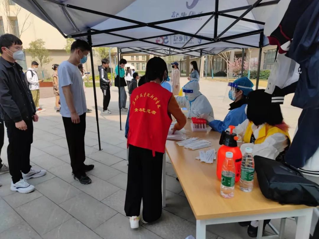 为了核酸检测工作的顺利进行,各学院学生会志愿者参与其中。艺术学院学生会卫生部全体部员积极参加,配合核酸检测工作,为同学们提供帮助和服务。整个过程有条不紊、忙而有序,在预定时间内高效率、高质量完成了全员采集任务。