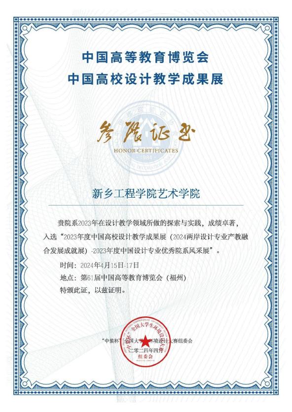 2024年4月15日,我院应“中装杯”全国大学生环境设计大赛组委会邀参加第61届高等教育博览会“中国环境设计教学成果展”。