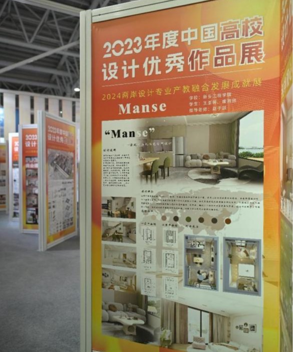 在高博会的“中国环境设计教学成果展”上,王亚婷、康雨欣的作品Manse更是获得了单独展板展示的机会,吸引了众多观众的目光。同时,院校的宣传条幅也展示了我校的风采及荣誉,充分展现了我院师生在教学和设计上的高水平。