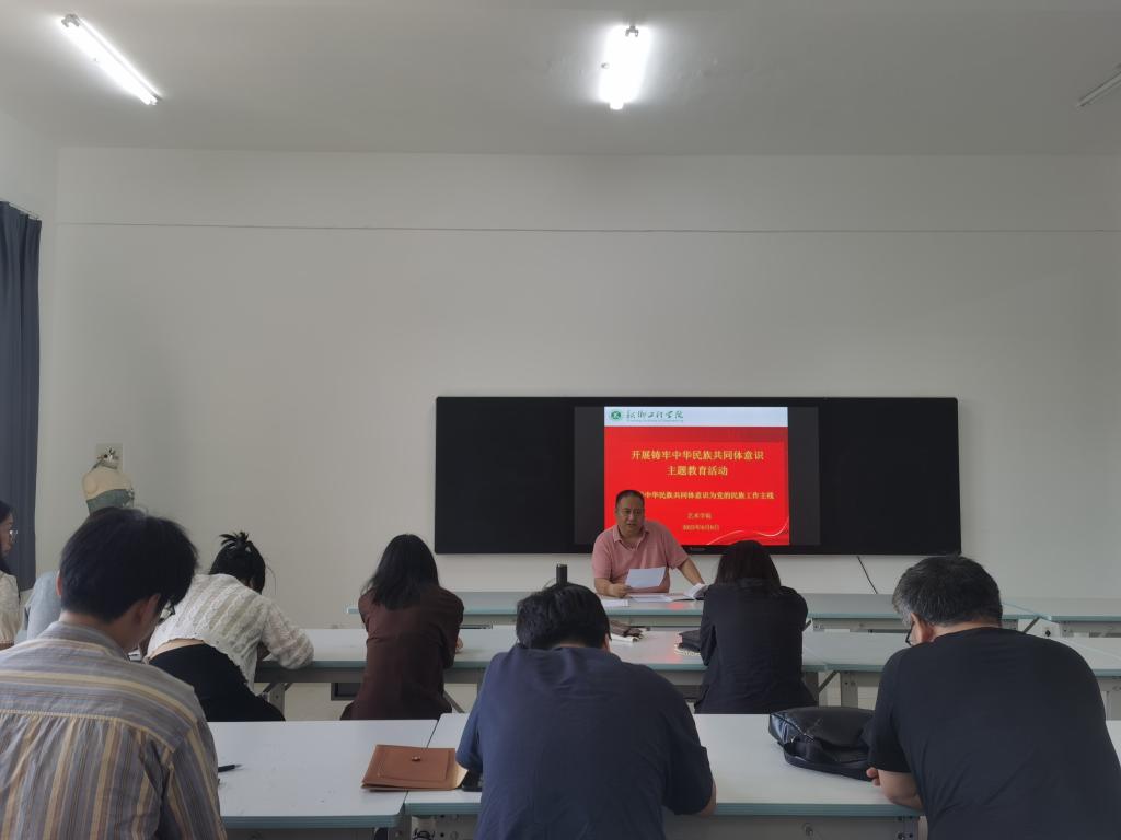 为深入学习贯彻习近平总书记关于加强和改进民族工作的重要思想,落实中央、省委民族工作会议精神,深化新时代学校民族团结进步教育,6月8日下午,我院在学院楼B408召开“铸牢中华民族共同体意识主题教育”活动,全体教师以及学生党员代表参加会议,艺术学院党总支副书记邢孟志主持会议。