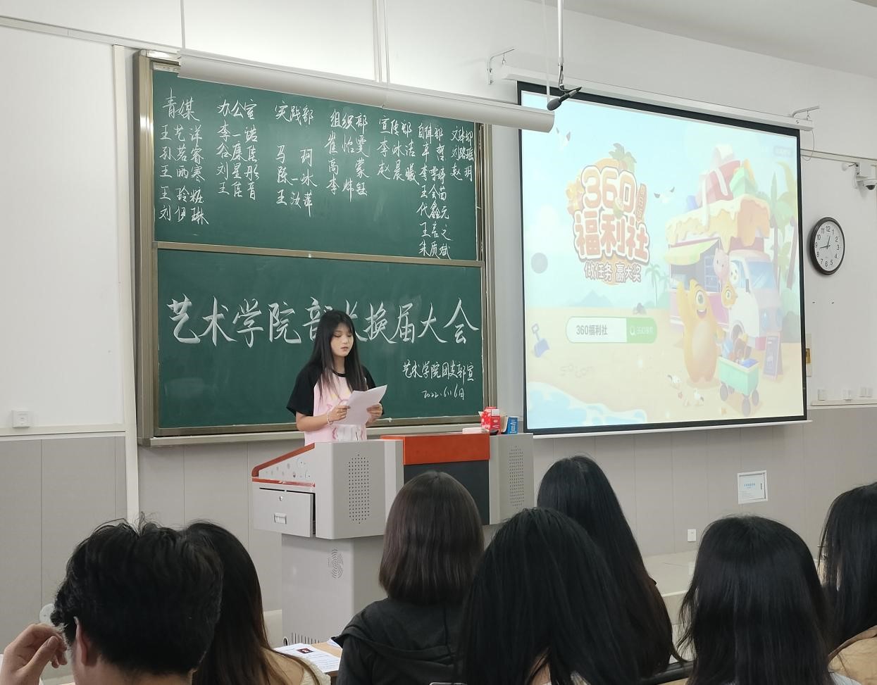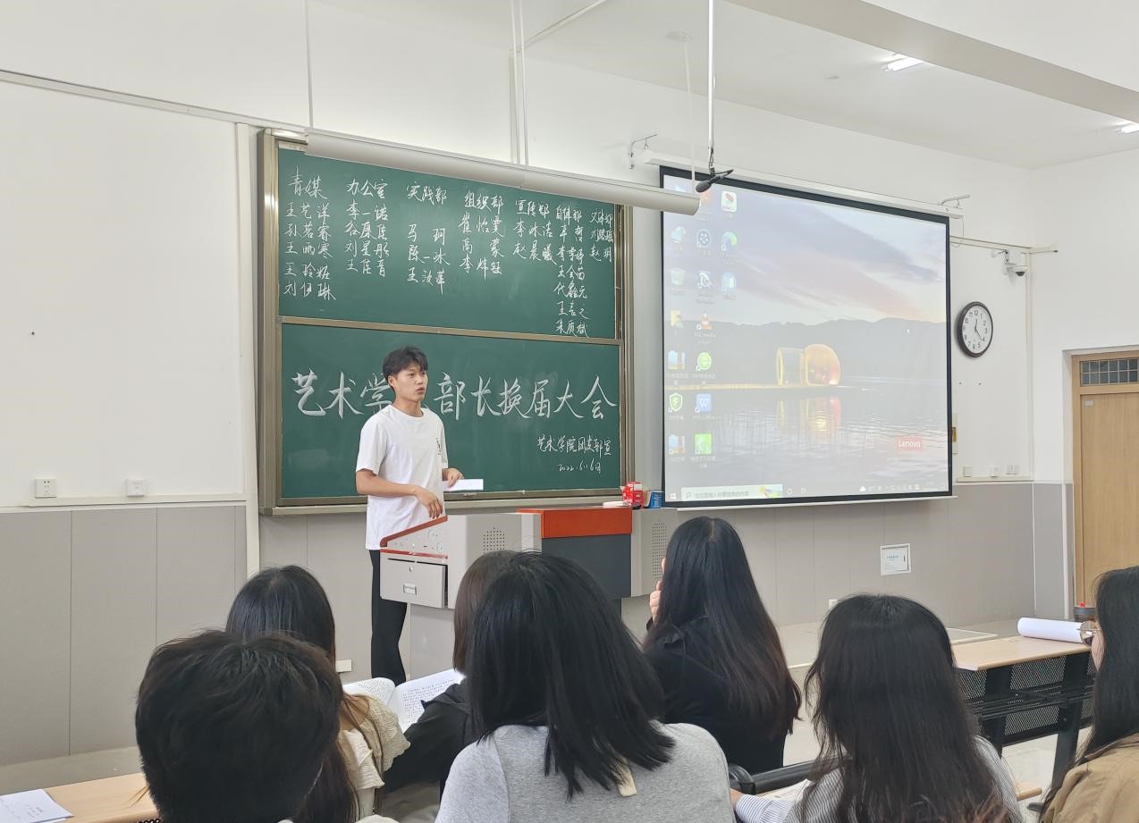 我院于6月16日在学院楼402教室进行学生会部长竞选。本次会议出席有傅婷,张婉怡等教师,学生会全体成员以及班委代表。