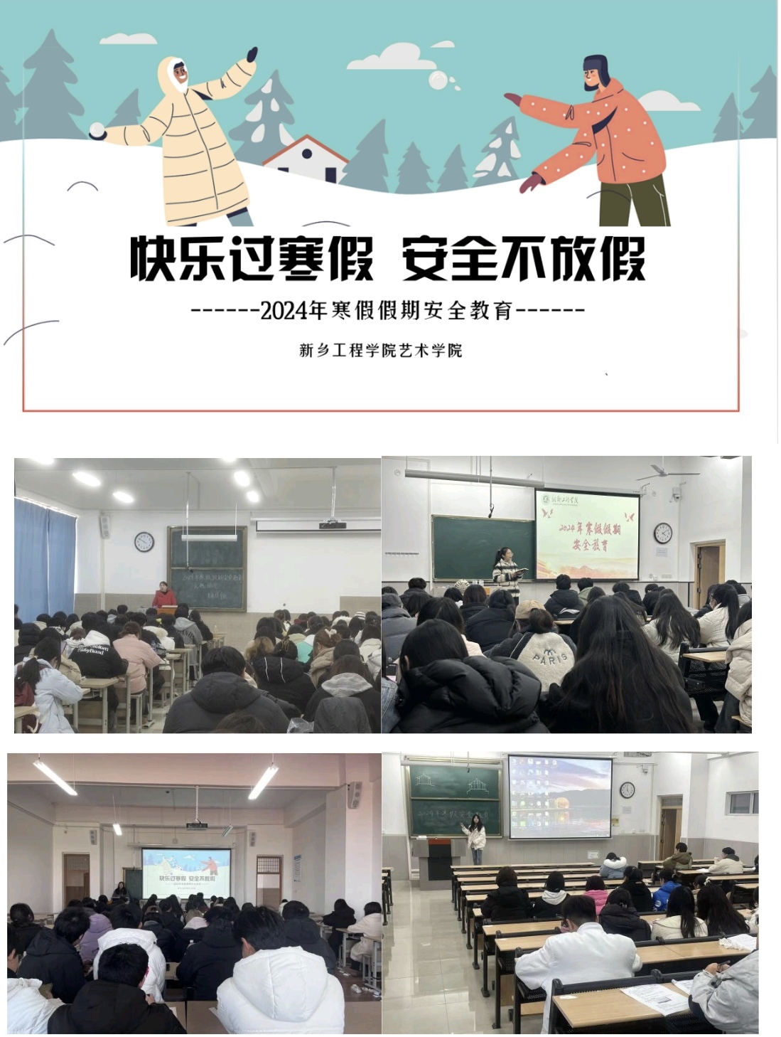 岁月不居,时节如流,一学期紧张忙碌的学习生活即将结束,为了加强同学们的安全意识,提高安全防范意识,切实增强学生的安全防范意识和避险能力,保障学生寒假前后安全。近日,艺术学院辅导员陈玄、贺爽哲、孙玉玉、王梦霞、张琬怡等人分别召开了“2024年寒假假期安全教育”主题班会。会上,辅导员老师就假期离校、安全注意事项等问题进行了总体强调,希望同学们在寒假期间要保障好人身安全、交通安全、财产安全、消防安全、饮食安全、宿舍安全等,结合我们日常生活中实际安全和学校安全,对大家进行安全教育,学习安全知识,使同学们认识到安全的重要性。会后,以班级为单位填写相关离校安全告知书及假期动向表。
