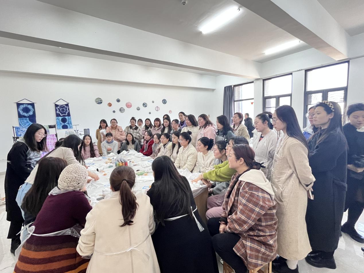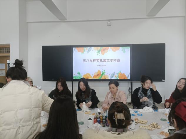 为迎接三八国际妇女节,彰显女性风采。我院于3月8日下午在学院楼B401扎染蜡染实验室为学校全体女教工举办了扎染艺术体验活动。