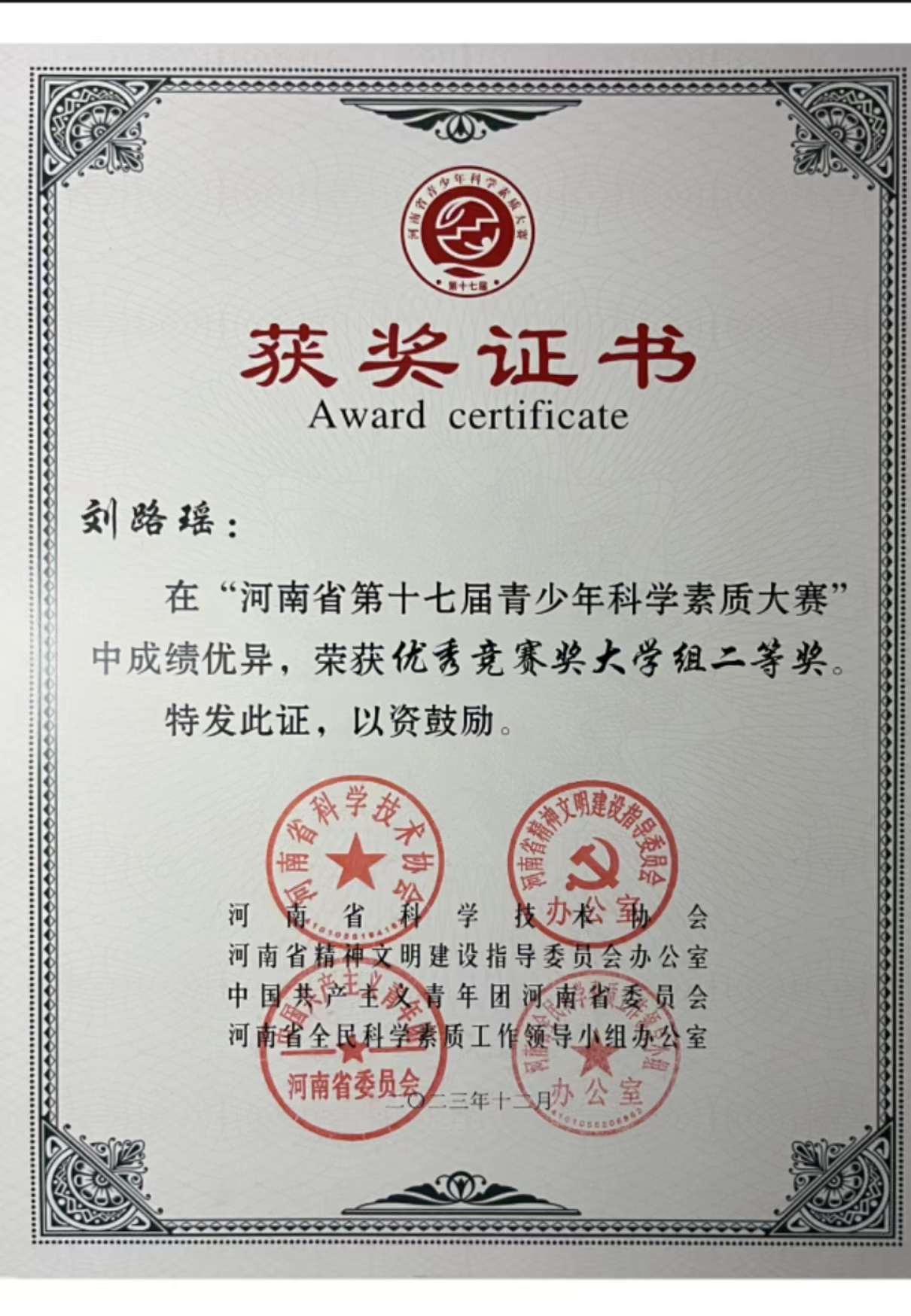 为提升学生科学素质,强化科学素养,我院组织全体学生参加河南省第十七届青少年科学素质大赛,并在大赛中获得优异成绩。