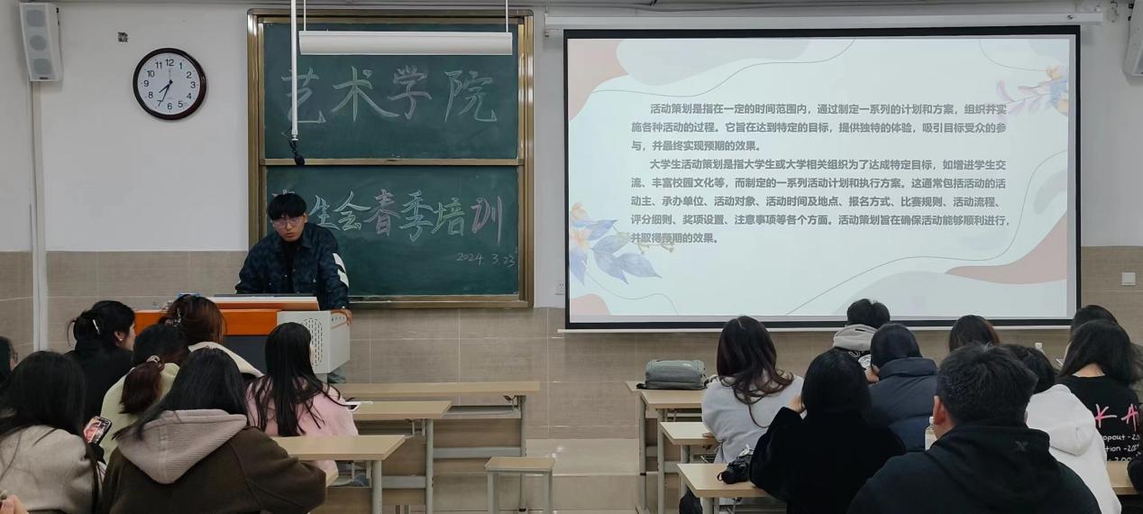 为扎实做好新学期开学各项工作安排,3月24日,我院在北校区树人楼103开展学生会春季培训会议。此次会议由我院学生会主席主持,院学生会成员全体参加。