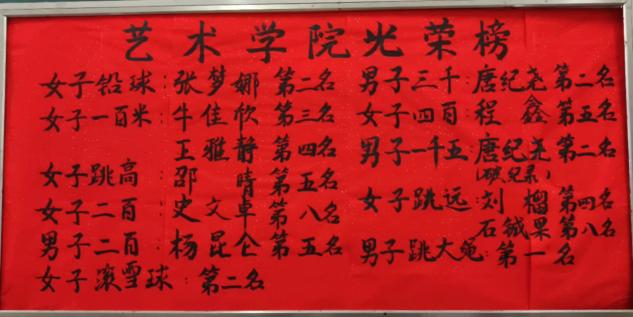 本次运动会中,我院方阵荣获入场式第二名,与机电工程学院共同选送的团体操《舞狮盛会》获得三等奖。同时,我院在本次运动会中荣获优秀组织奖,其中唐纪尧在男子3000米长跑中荣获第二名,张梦娜在女子铅球项目中取得第二名,两人皆获得优秀运动员称号。