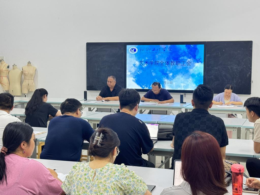 2024年7月11日下午,艺术学院在学院楼B408召开2023-2024学年第二学期期末总结会。院长张建伟、副书记王岩、副院长邢孟志以及全体教职工参加了会议,会议由院长张建伟主持。
