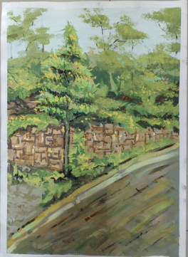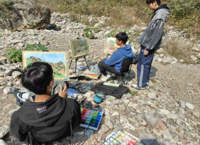 此次写生实践活动旨在让学生们走出课堂,深入自然,用画笔捕捉自然风光,进一步提升学生们的艺术创作能力和审美素养。在写生实践过程中,师生走进乡野山村,领略大自然的鬼斧神工与传统村落的独特韵味。学生们满怀期待带着画板、画笔和调色板,兴奋地穿梭在山水之间,寻找着最能打动自己的风景,选好景后则迅速投入到写生的状态中,或坐于山间小径旁,或立于溪流之畔,全神贯注地用画笔捕捉眼前的风景。他们时而低头沉思,时而挥笔勾勒,试图用最精准的笔触捕捉自然的神韵,老师们在旁边耐心指导,从构图、色彩到笔触的运用,都给予了学生们宝贵的建议。