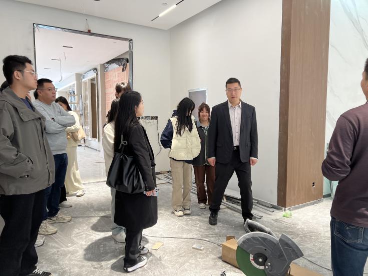 2024年11月1日,艺术学院环境设计专业组织学生赴郑州校外实践教学基地,开展《设计工程制图》、《装饰材料与造价》课程实践教学活动。教学基地申金平主任对环境设计专业师生的到来表示热烈欢迎,并对接下来的课程实践教学内容和项目施工现场的安全事项进行了宣讲。