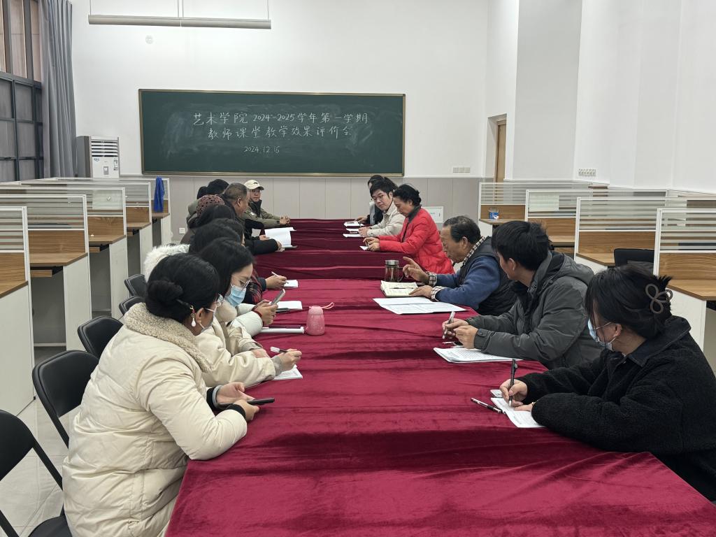 为提升教学质量,促进教师专业发展,艺术学院于12月16日在学院楼A112召开2024-2025学年第一学期教师课堂教学效果评价会。会议由艺术学院院长张建伟主持,班子成员、各教研室主任等参加会议。