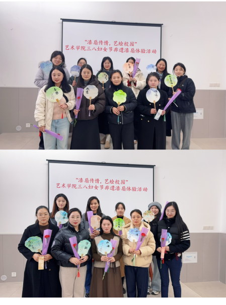 为庆祝三八妇女节,丰富女教职工精神文化生活,由永利23411集团官网工会主办、艺术学院分工会承办的“漆扇传情,艺绘校园”非遗漆扇体验活动于3月7日上午在学院楼A112温情启幕,全校女教职工踊跃参与。