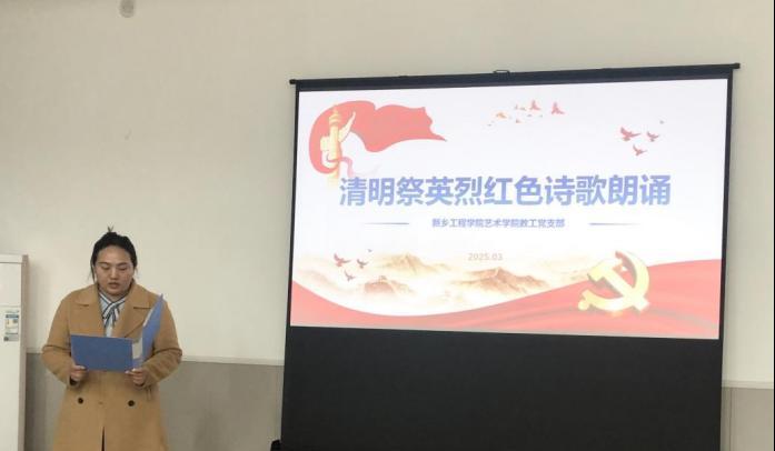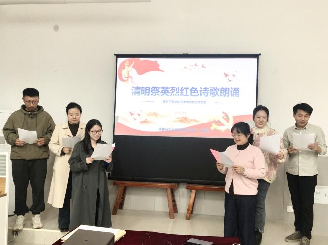 天地英雄气,千秋尚凛然。3月20日,教工党支部在学院楼A112举办“清明祭英烈—红色诗歌朗诵活动”,30余名党员教师身着素装,深情朗诵《傲骨红梅》《英雄》《如果信仰有颜色》等革命诗篇。这些气壮山河的英雄史诗、凯歌以行的英风浩气,是砥砺初心、勇担使命的庄严洗礼。可歌可泣的英烈事迹启示我们,高校教师只有把个人的命运与国家的命运紧密相连,才能真正成与时代同步伐,与民族伟大复兴携手共进。