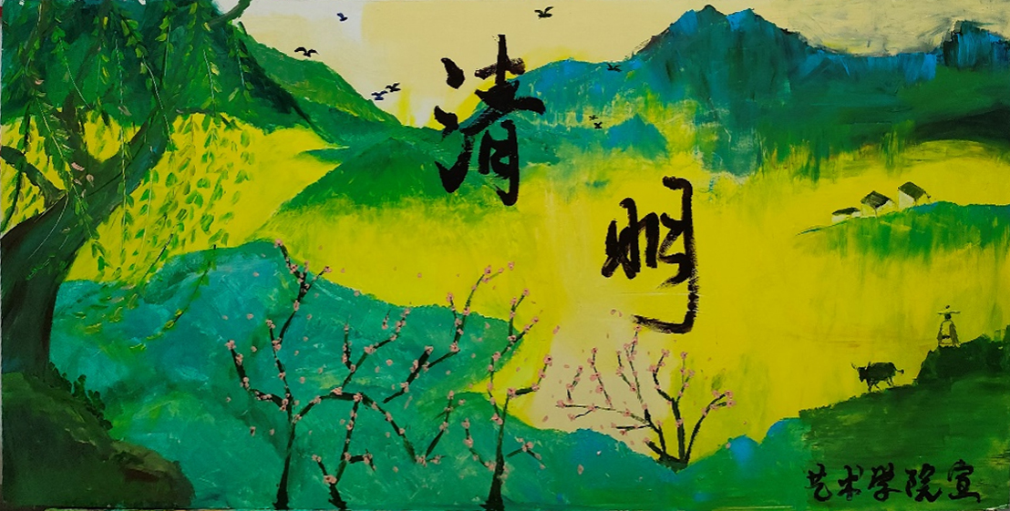 重温红色历史,追思英烈。4月3日,艺术学院学生党员发挥专业特长,精心设计了“清明”主题展板,素雅的青绿色表达了同学们在慎终追远中铭记历史,传承红色基因。