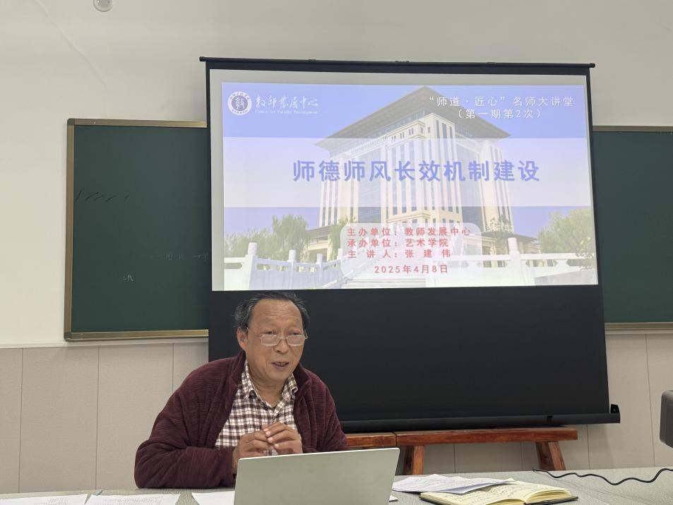 为深化新时代教师队伍师德师风建设,营造风清气正的育人环境,艺术学院于4月8日在学院楼A116举办“名师工作坊”系列活动,本周邀请艺术学院院长张建伟教授担任主讲人。