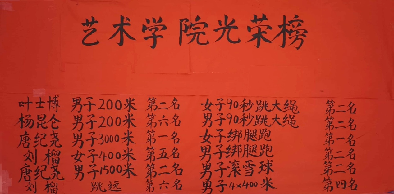 本次运动会中,我院方阵通过变化将色彩与音乐结合,荣获入场式第一名。唐纪尧在男子3000米长跑中荣获第一名,叶士博在男子200米比赛项目中取获第二名,两人皆获得优秀运动员称号。