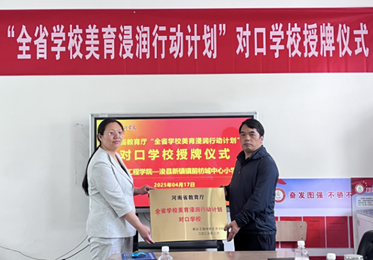 为进一步推动河南省教育厅第三批全省美育浸润行动计划的深入实施,加强高校与中小学美育协同发展,4月17日,永利23411集团官网副校长赵瑞玲、艺术学院院长张建伟及美育浸润计划团队成员前往鹤壁黎中实验学校、浚县新镇镇前枋城中心小学、浚县小河镇聂渡中心校三所学校,隆重举行了“对口学校”授牌仪式与“名师工作室”挂牌仪式。