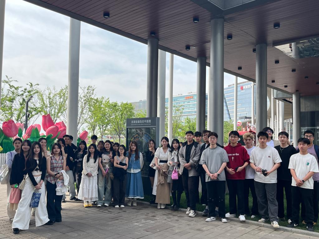 第一站学生们来到了郑州金融岛,在此重点考察了建筑风格、空间规划、建筑外观与周边景观的融合以及新型业态分布。学生走进联合办公空间、品牌体验店,认真分析其营业模式(如快闪店、沉浸式展厅)及空间动线设计。随后,在北龙湖公园,学生们认真学习环湖绿道中的功能分区,并且发现滨水栈道采用本土植物造景,对在设计中增强地域特色有了实际的感知。金融岛的现代感与北龙湖的生态形成对比,启示学生们在今后的设计中需平衡功能与可持续性。