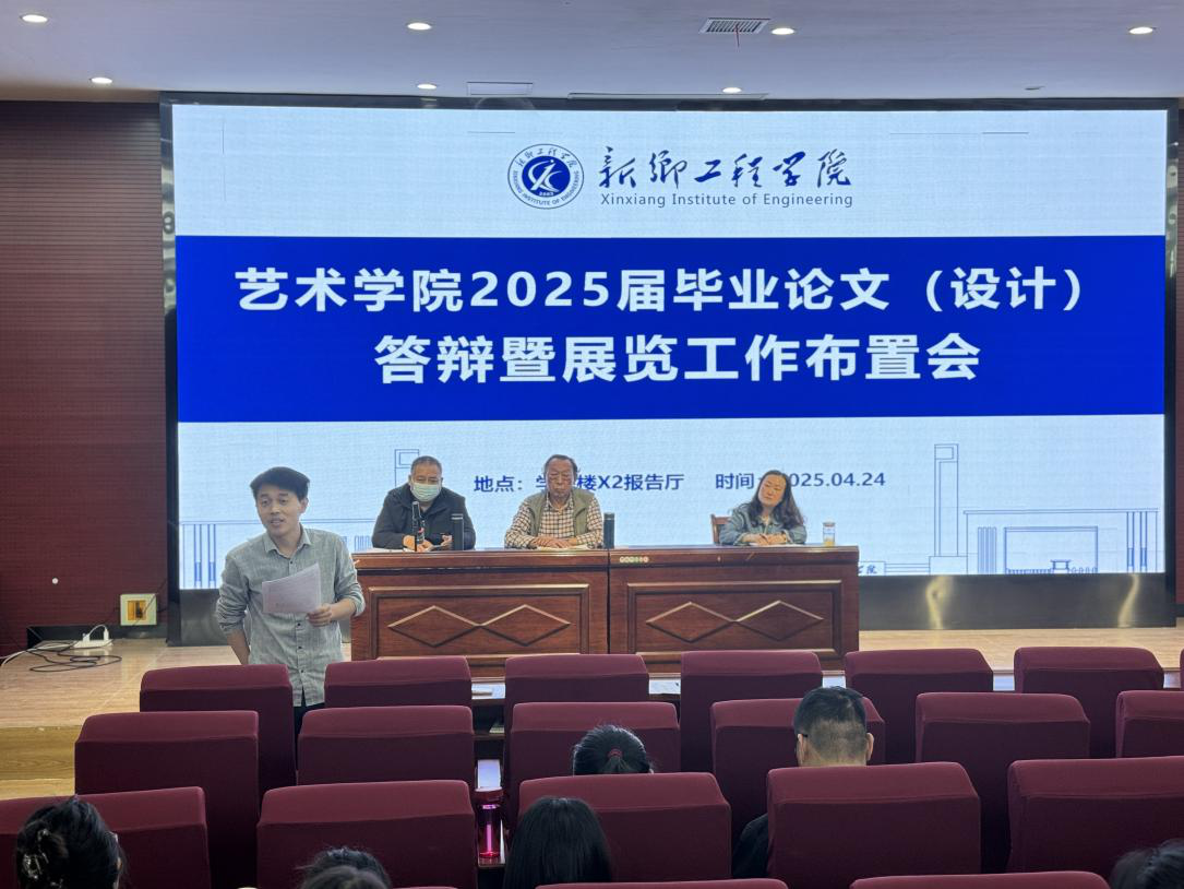 为保障2025届毕业论文(设计)答辩与展览工作高质量推进,强化毕业环节教学质量把控,全方位展现毕业生专业素养与艺术风采,4月24日,艺术学院于学院楼X2报告厅召开2025届毕业论文(设计)答辩暨展览工作布置会。会议由教学副院长邢孟志主持,全体教师参会。