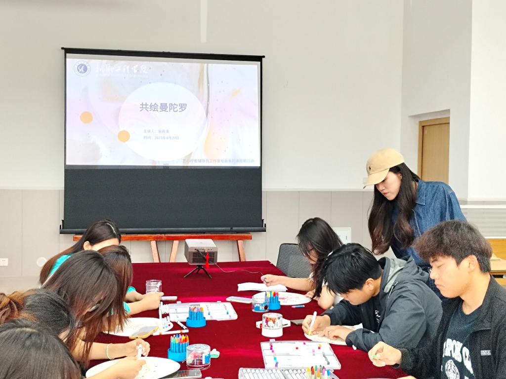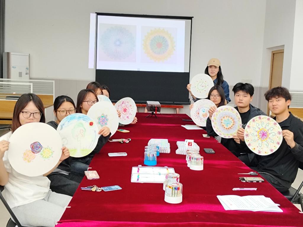 在快节奏的现代生活里,大学生们面临着学业、社交等多方面的压力,心灵偶尔也需要一场温柔的治愈之旅。4月29日上午10:00,在学院楼A112教室,艺心疗愈辅导员工作室张雨潇老师精心筹备的“共绘曼陀罗”绘画疗愈活动温馨开启,为同学们搭建了一座通往内心宁静与创意绽放的桥梁。