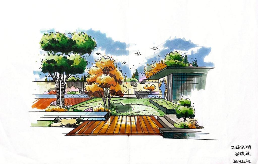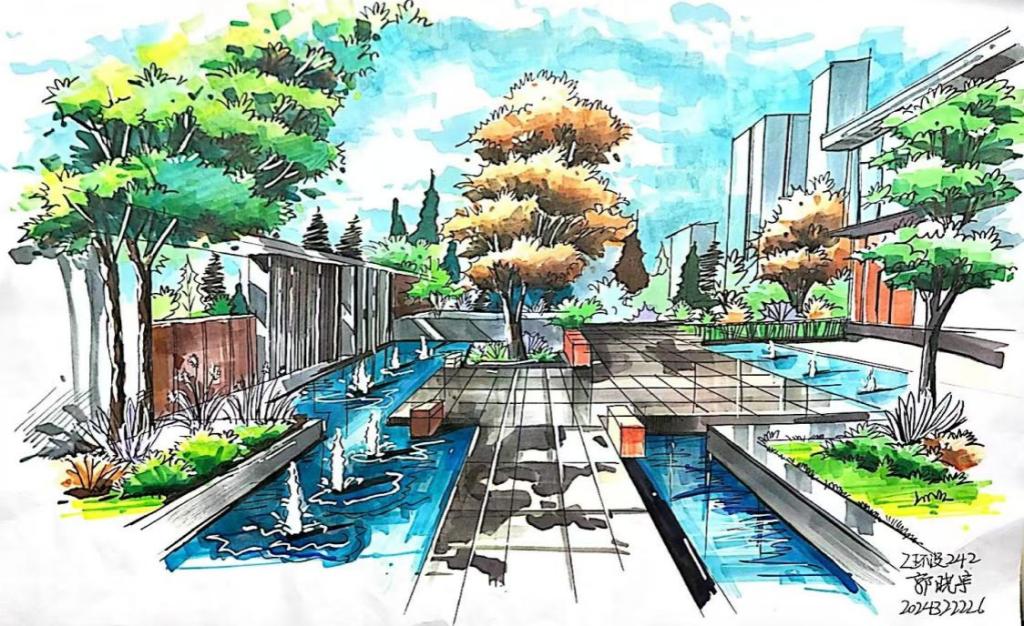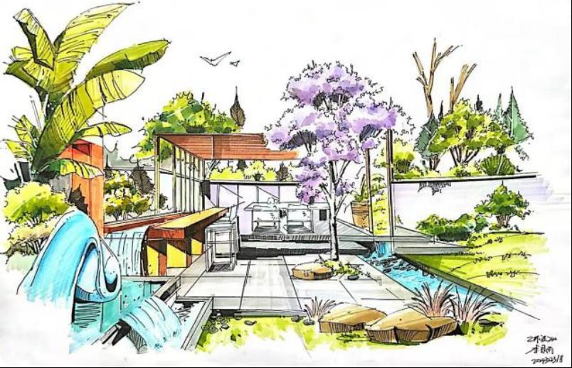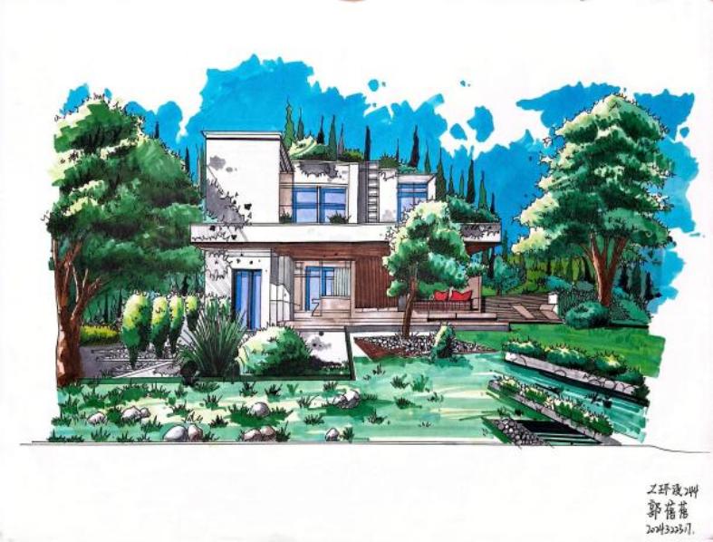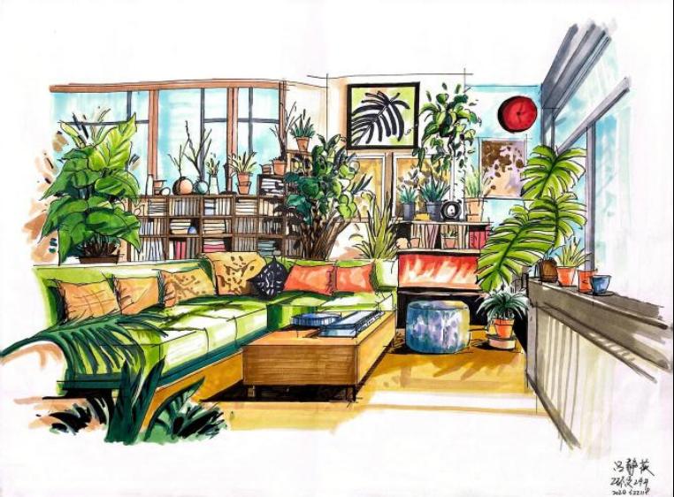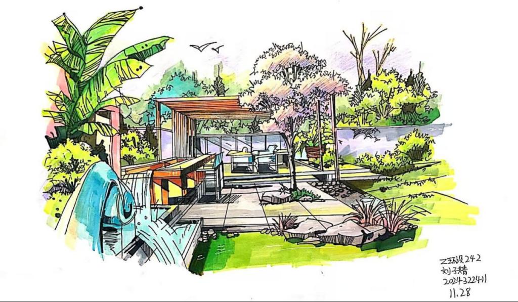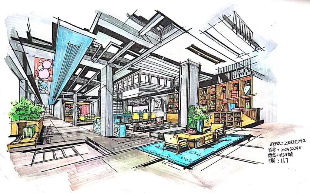 通过本课程的学习,引导学生掌握手绘表现的基本技法,在一张张的手绘练习中,夜以继日,磨笔、磨心,无论是技法还是心智,以及对于空间的理解和表现,在课程的学习过程中,都有了极大的提升和进步。虽然目前学生的作品,还有一些不足和需要进一步完善的地方。但是就学生之前的实际情况而言,班级半数以上为跨专业,零基础的同学,通过课程的学习和坚持不懈的努力,目前已经取得的非常大的突破和进步,还是非常值得肯定的。通过对课程不断的学习和挑战,逐步建立了学生对于专业学习的热情和信心,对于学生树立正确的学习观和人生观,都有积极的促进作用。