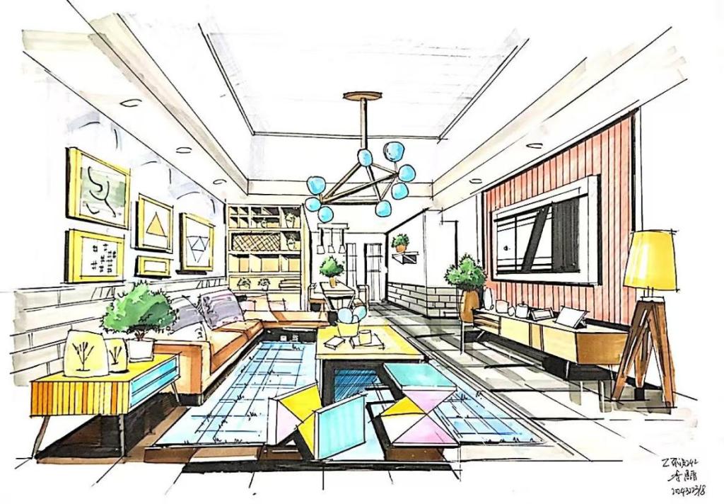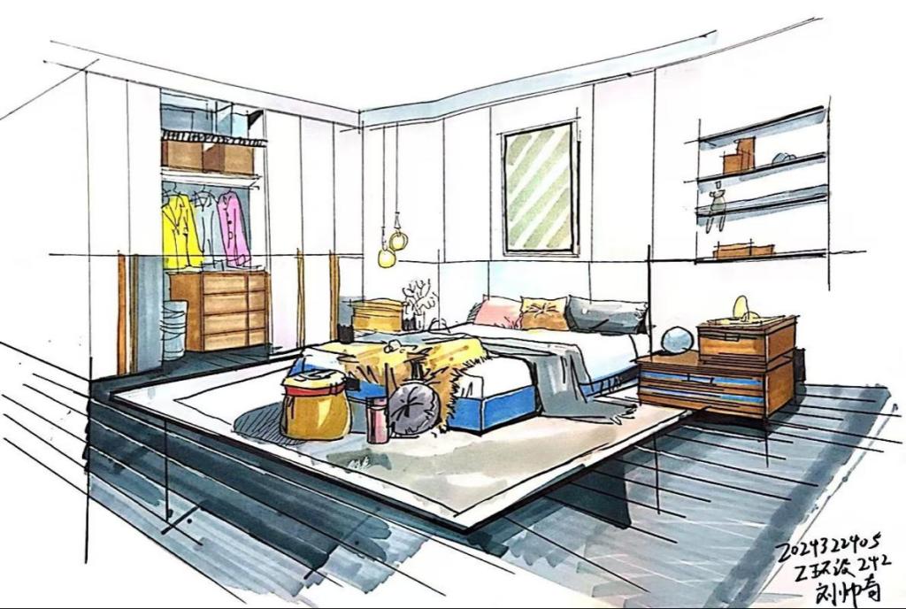 《设计表现技法》是环境设计专业一门重要的专业核心必修课程,主要培养学生手绘设计表现能力,为后期的方案设计打下良好的基础。该课程设置紧凑合理,第一阶段,侧重夯实基础,从基本的手绘线条、室内外方体练习,再到单体及组合的表现,空间透视精细线稿的表现;第二阶段,突出马克笔和彩铅的技法表现,从马克笔的基础用笔、材质配色,再到单体、组合以及空间的上色练习;第三个阶段,基于专业制图、室内设计原理、手绘效果图等专业综合能力,尝试表现设计方案。