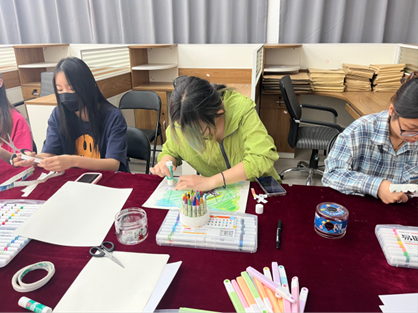在快节奏的现代生活中,我们每个人都像是在高速运转的机器上不停歇的零件,内心难免会积累各种压力与情绪。五一假期后的第一天,由“艺心疗愈”辅导员工作室张雨潇老师组织的一场别开生面的“色彩拼贴与情绪编织”绘画疗愈活动在学院楼A112教室展开,宛如一阵清风,轻轻拂过参与者的心田,为大家带来了一场温暖而治愈的心灵SPA。