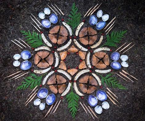 紧接着,进入案例赏析环节。同学们一同领略了晨坛艺术的独特魅力,这种利用天然材料在大地上摆出优美图案的艺术形式,不仅与中国藏族的坛城沙画有着异曲同工之妙,更因其原材料取自自然、可自然降解的特性,彰显出环保理念与心灵疗愈的完美融合。此外,“ochiba 艺术”—— 落叶艺术,以及精美的叶雕艺术作品,也让大家惊叹于艺术家们对自然材料的巧妙运用和无限创意。一幅幅精美的案例展示,如同打开了一扇扇通往自然艺术殿堂的大门,激发了同学们的创作热情。