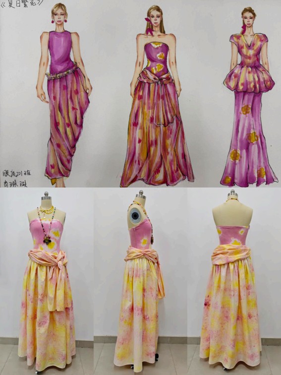 《扎染蜡染艺术设计》是服装与服饰设计专业三年级的一门专业任选课程。该课程以深入浅出的方式,全面而系统地讲解了手工染织领域中极具魅力的扎染与蜡染技艺。从创意构思到实际操作,课程引导学生深入领略这一传统艺术的独特魅力,旨在激发学生对传统手工艺的浓厚兴趣与深刻认知,全面提升学生在服装传统手工印染领域的专业技能,使其能够系统地掌握,并将其灵活、高效地运用到实践创作中。