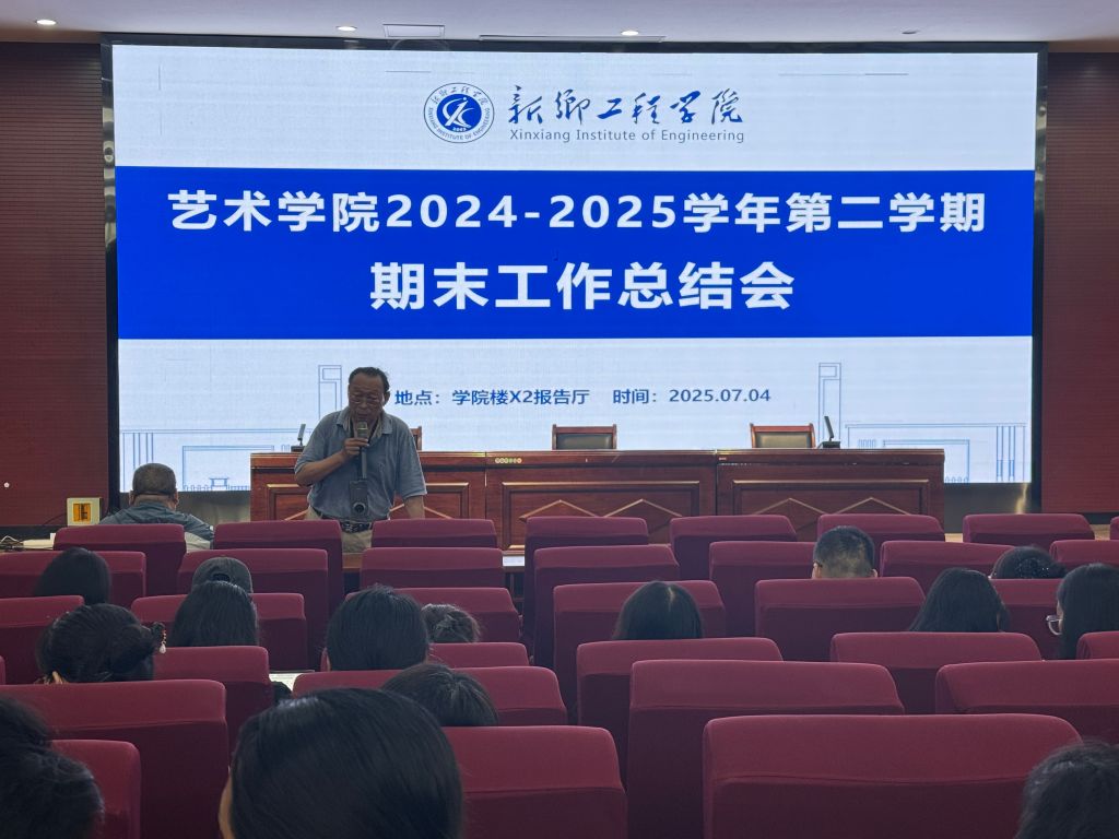 7月4日,艺术学院在学院楼X2报告厅召开2024-2025学年第二学期期末工作总结会,全面总结本学期工作成果,部署暑期及下学期重点工作。学院全体教职工参加会议,会议由院长张建伟主持。