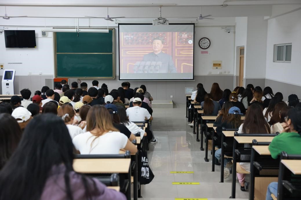 9月3日上午,纪念中国人民抗日战争暨世界反法西斯战争胜利80周年大会在北京天安门隆重举行。中共中央总书记、国家主席、中央军委主席习近平发表重要讲话并检阅受阅部队。副校长张彦军与我院师生集中收看了大会直播,共同上了一堂生动而深刻的爱国主义教育课。
