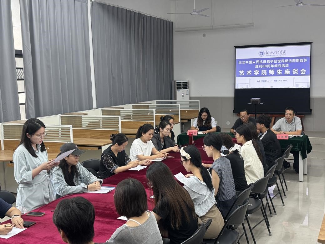 随后,我院领导班子及教师、学生代表在学院楼1-A112组织召开座谈会,围绕直播精神进行深入交流讨论。大家纷纷表示要深刻理解抗战精神的历史意义与时代价值,将观看阅兵激发的爱国热情转化为推动艺术创作与教育事业发展的实际行动。