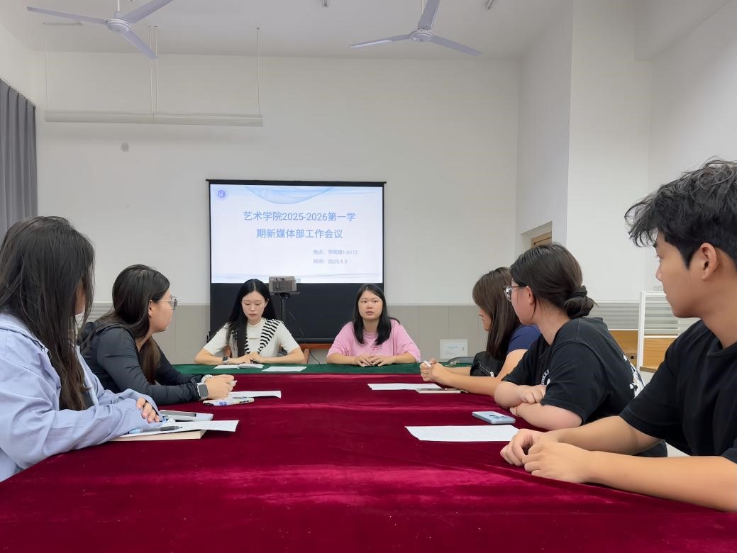 为加强学院新闻宣传工作队伍建设,提高新闻宣传质效,推动媒体平台融合发展。9月5日,艺术学院新媒体部在学院楼1-A112召开本学期第一次部门工作会议。学院团委书记陈玄、新媒体负责老师李锦钰及部门骨干齐聚一堂,共同展望新学期工作蓝图。