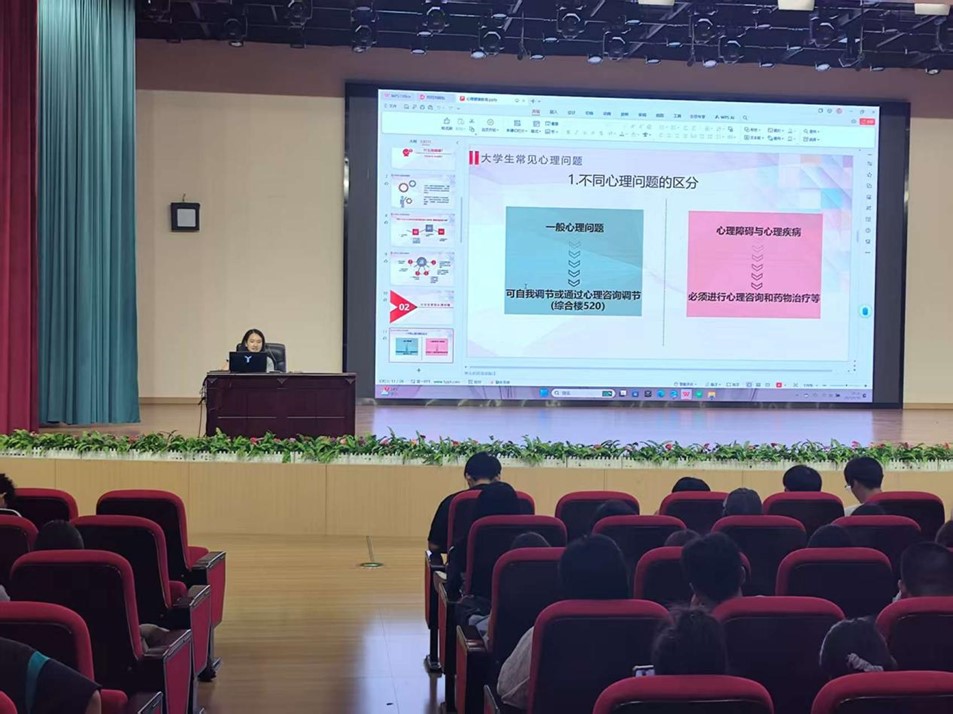 针对大学生常见心理问题,李亚迪老师讲解一般心理问题与心理障碍、心理疾病的区分,告知新生一般心理问题可自我调节或通过心理咨询调节,引导新生关注心理健康,及时疏导心理问题。