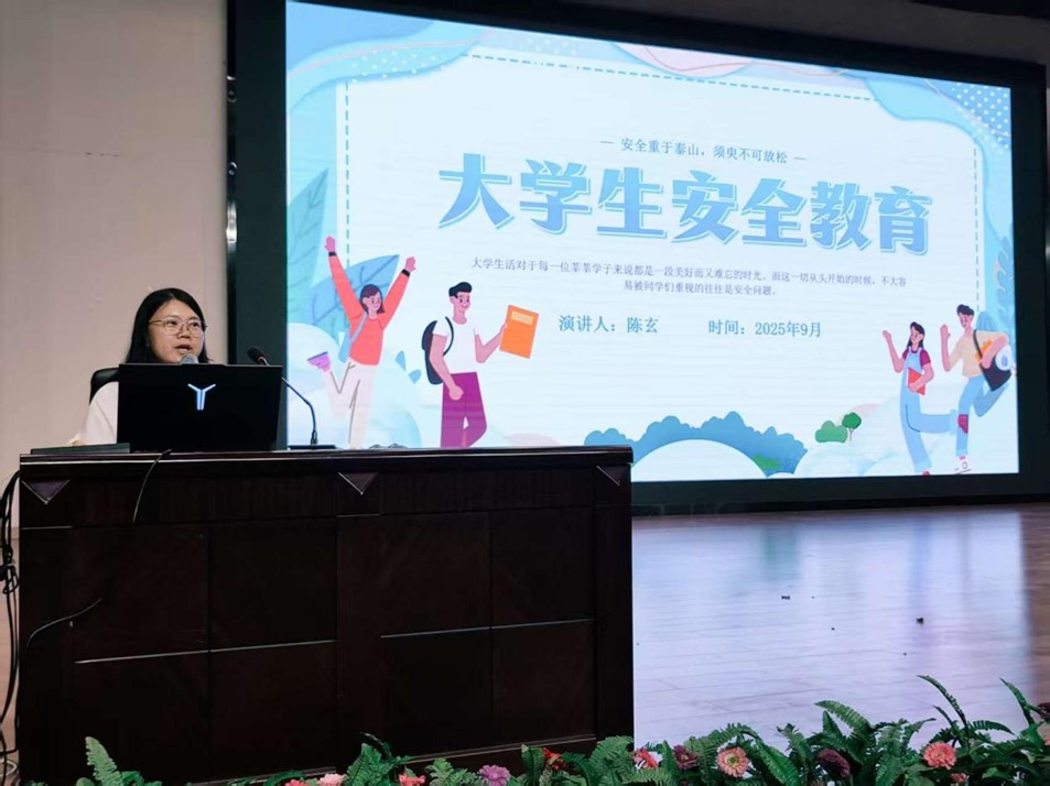 “安全重于泰山,须臾不可放松”,陈玄老师从校园安全、人身安全、财产安全等多方面开展讲座,引导新生重视安全问题,为大学生活筑牢安全防线。