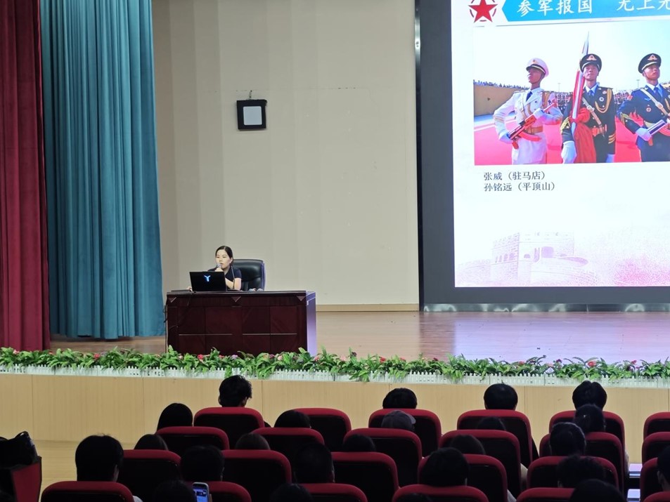 张超迪老师开展参军报国宣讲,以优秀军人榜样为例介绍参军政策与荣誉,激发新生爱国情怀与参军热情,鼓励有志向的新生投身军营实现青春价值。