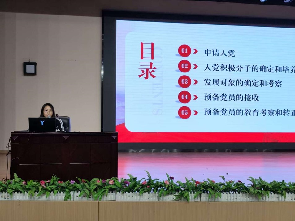 孙玉玉老师就入党流程展开细致讲解,从申请入党、入党积极分子培养,到发展对象考察、预备党员接收及转正,清晰的流程介绍让有入党意愿的新生明确努力方向。