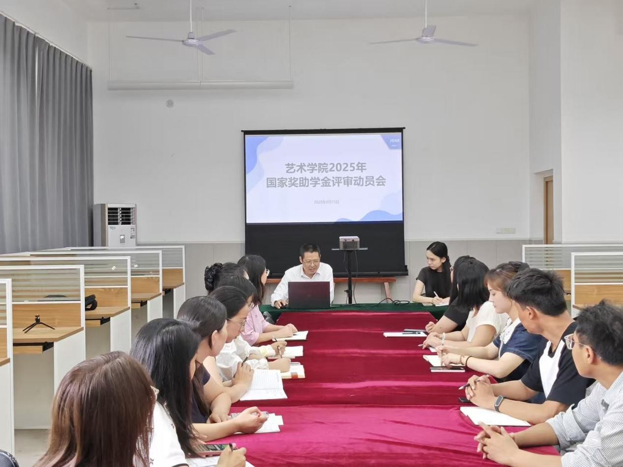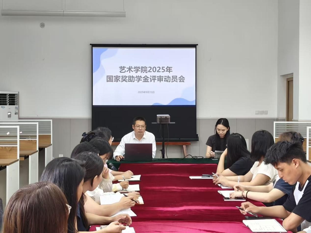 9月15日上午,艺术学院在学院会议室召开2025年国家奖助学金评审动员会,学院党委副书记王永刚、奖助学金工作负责人汪书宇及全体辅导员参加会议,为评审工作把方向、明要求。