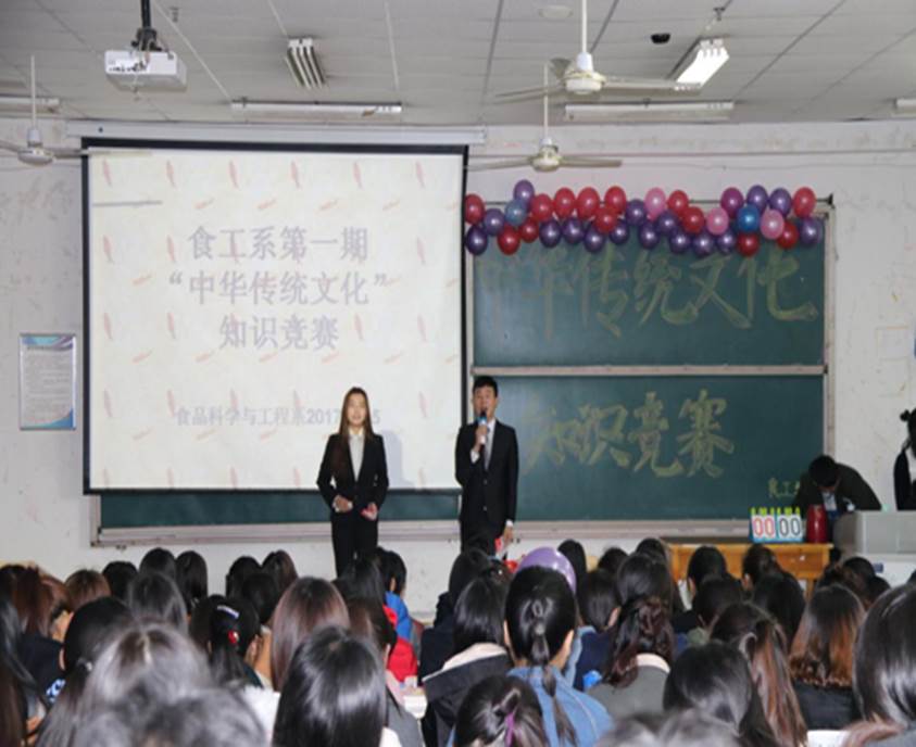 为响应学院号召,提高当代大学生对中华民族优秀传统文化的重视,食工系开展了以“弘扬传统文化 谱写爱国热情”为主题的“一站到底”传统文化知识竞赛。3月15日,第一期知识竞赛在12号教学楼合八教室拉开序幕。食工系系主任孙华迪、副主任路源、团总支书记刘双华,辅导员张晓娜、陈晓静观看了此次比赛。