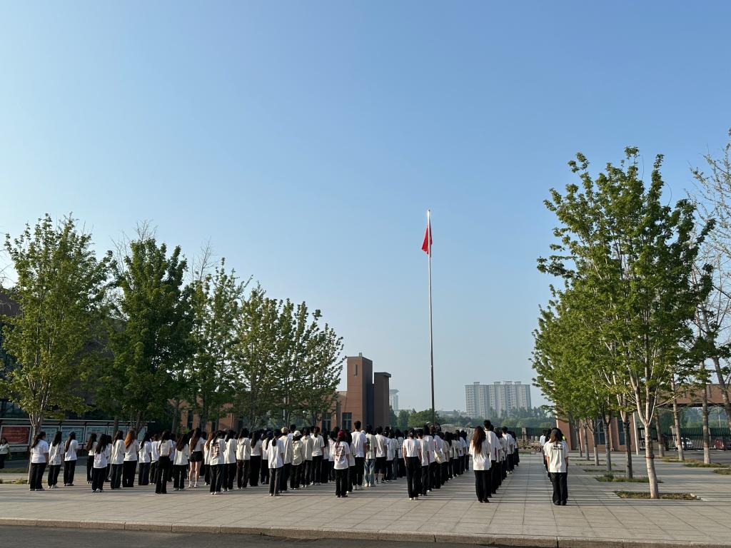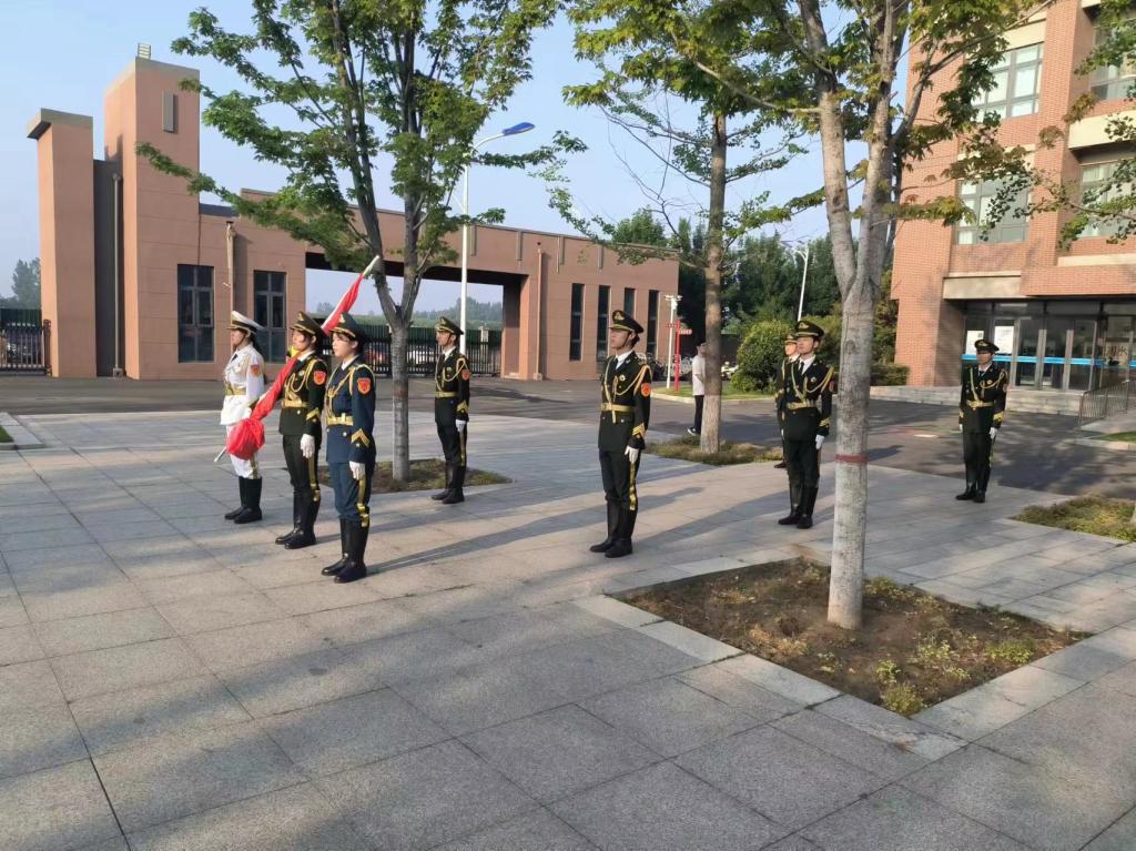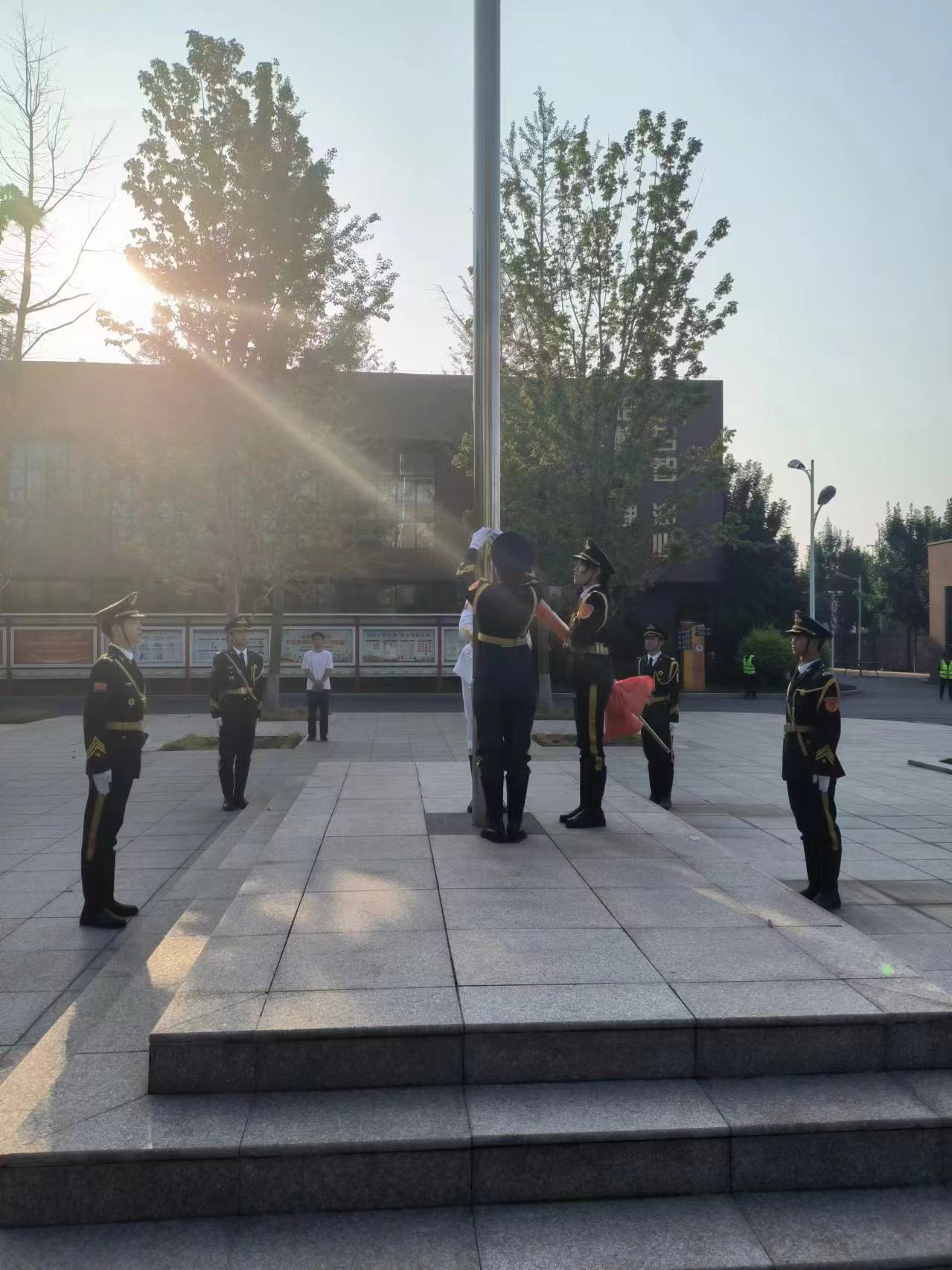 在嘹亮的国歌声中,五星红旗缓缓升起,迎风飘扬。全体师生面向国旗,行注目礼,心中充满对祖国的热爱和敬意。
