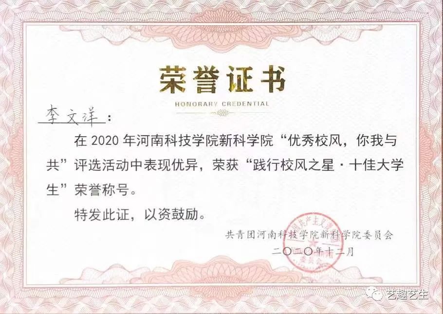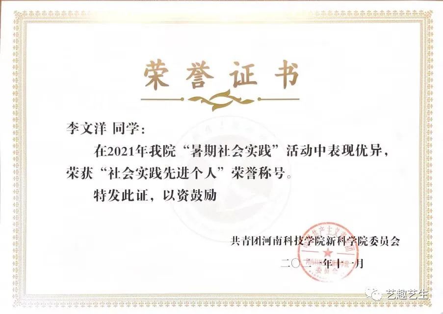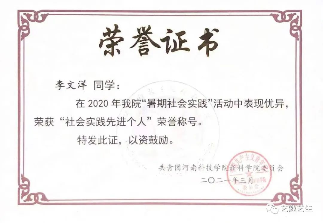 李文洋,男,中共预备党员。曾任职于永利23411集团官网团委,现任艺术学院环设191班班长、艺术学院学生第一党支部宣传委员。所参加的第八届大学生创新创业大赛在实训中立为省级项目。在校期间荣获国家励志奖学金、河南省“三好学生”、新乡市“优秀大学生”、新乡市第二届大学生书法绘画设计大赛二等奖、第三届国青杯“一等奖”、第六届国青杯“二等奖”、校“三好学生”、校“文明学生”、校“十佳大学生”称号、校红歌赛“二等奖”,多次获得“社会实践先进个人”和“一等奖学金”。2021年7月,带队前往前小召村参加了我校举行的为期一周的“三下乡”活动,活动期间不怕困难、勇于承担、积极完成任务。结束后,获得了村支部书记和老师的一致肯定。在疫情、“7·12”特大暴雨期间多次参加志愿者,贡献自己的一份力。在生活中兴趣广泛、乐于助人、外向活泼。