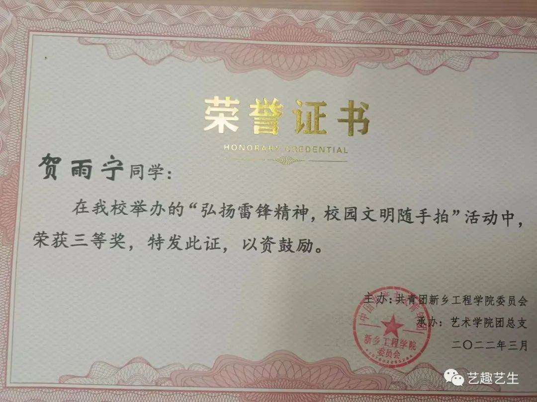贺雨宁,工美211,现任艺术学院青年自律部副部,曾获三好学生、优秀学生干部、优秀志愿者等称号,多次获得班级奖学金。个人性格体质活泼开朗,表达能力佳,富有影响力、说服力和幽默感,同时综合素质与个人素养较好、专业水平较高。逻辑思维缜密,敏感细腻善于分析。日常生活中喜欢看看书,听听音乐,运动,打打羽毛球。对待工作负责,一直追求进步。她的座右铭是人生在勤,不索何获!