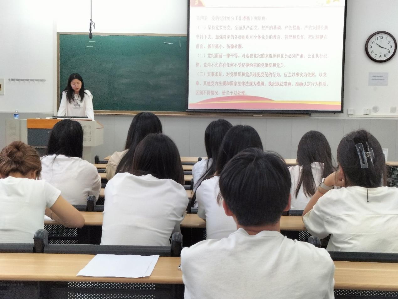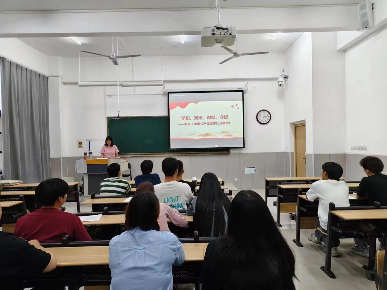 为深入学习贯彻习近平新时代中国特色社会主义思想,进一步加强党的纪律建设,推动广大党员干部强化纪律意识、加强自我约束,自觉用党规党纪及时矫正自身思想和行为,引导广大师生自觉学纪、知纪、明纪、守纪,我院教工党支部与学生党支部于5月30日在学院楼召开党纪学习教育,让党纪知识深入人心。