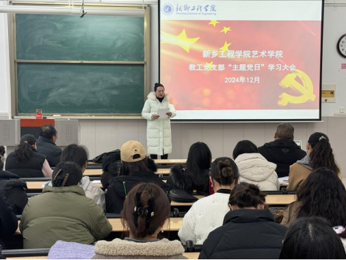为深入贯彻落实习近平新时代中国特色社会主义思想,优化教工支部党建工作,12月19日下午艺术学院教工党支部召开十二月“主题党日”学习大会。教工党支部书记张园园主持会议,支部全体成员参加会议。