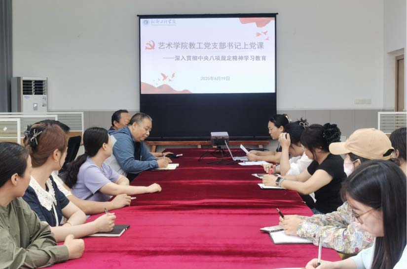 艺术学院教工党支部于6月19日在学院楼A112开展了一场意义深刻的支部书记上党课活动。此次活动紧密联系党员思想和工作实际,旨在通过党课学习,进一步强化党员对党的作风建设的认识,不断增强贯彻中央八项规定精神的自觉性主动性。