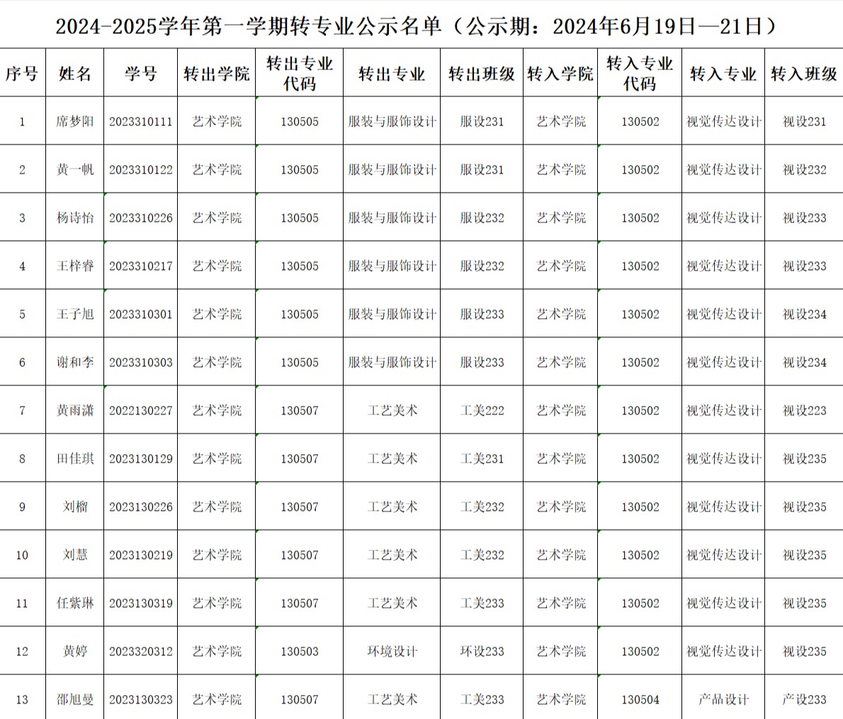 公示期间如有对转专业结果有异议者,请联系艺术学院。