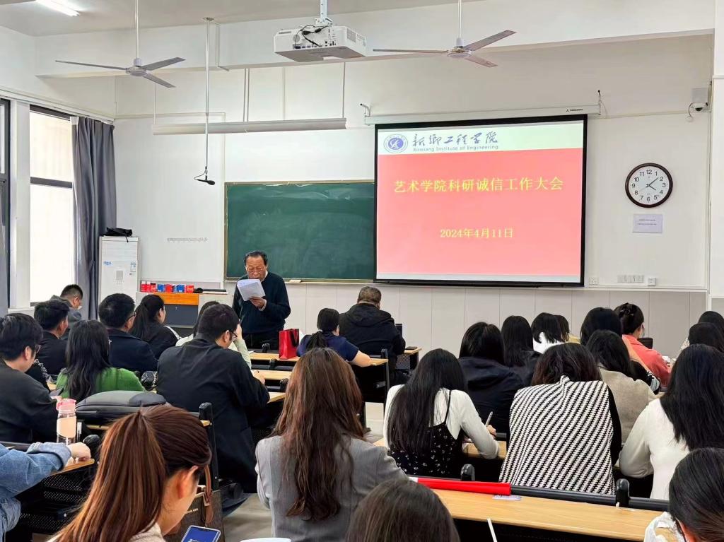 为营造良好的学术科研环境和氛围,着力推进学院科研诚信工作走深、走实,助力科研工作高质量发展。4月12日,艺术学院在学院楼B315召开科研诚信工作专题会议,会议由院长张建伟主持,学院全体教职工参加。