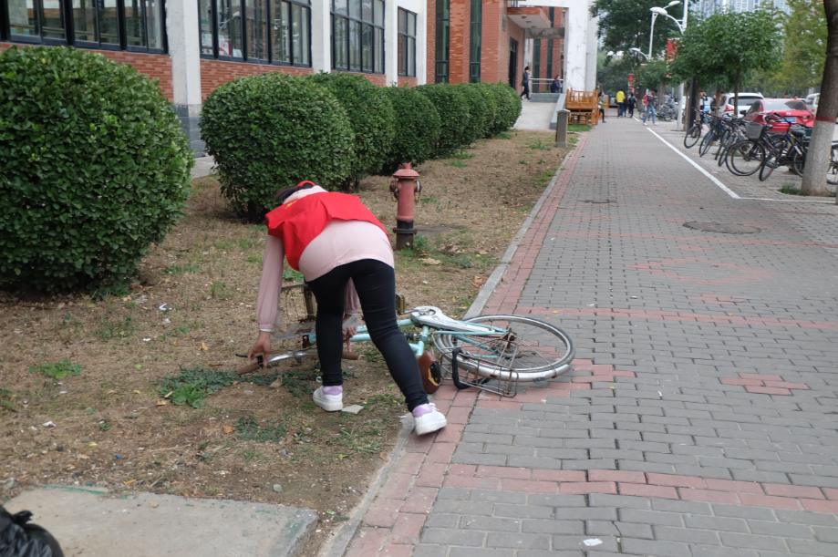 活动过程中同学们不怕苦不怕累不怕脏,迎着寒风巡视校园的每一个角落。同学们弯下腰清理被丢弃在各个角落的纸屑、包装袋、果皮等杂物,并且扶起被寒风刮倒的自行车并摆放整齐。劳动过程中,大家干的热火朝天,经过两个多小时的辛勤劳动,校园的整体环境焕然一新!