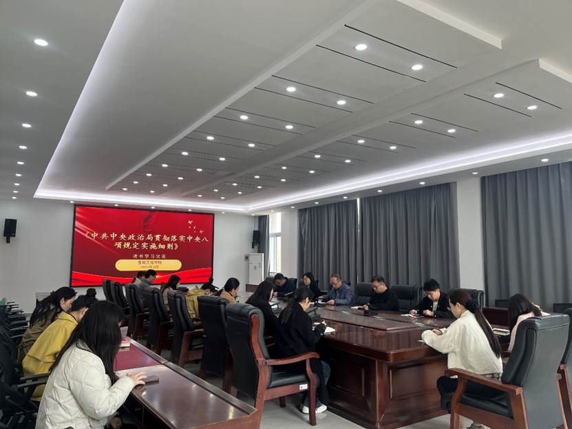 3月28日上下午,生物工程学院深入贯彻中央八项规定精神学习教育读书班交流研讨会在综合实验楼201会议室举行,旨在深入贯彻中央八项规定精神学习教育,强化党员党性修养和纪律意识。会议由党委书记牛立元主持,学院全体党员参加。