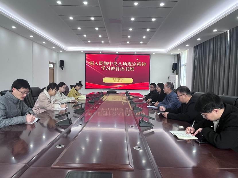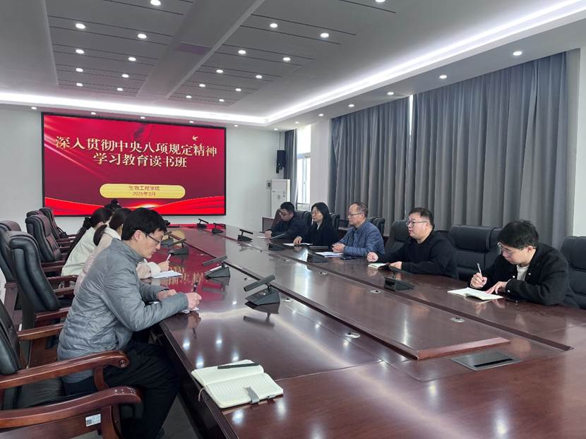 3月27日下午,生物工程学院在综合实验楼201会议室举行深入贯彻中央八项规定精神学习教育专题读书班。会议由生物工程学院党委书记牛立元主持,党委委员及各支部委员参加。
