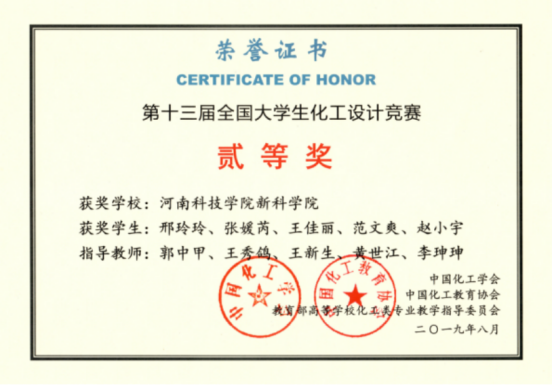 获得第十三届全国化工设计竞赛二等奖
